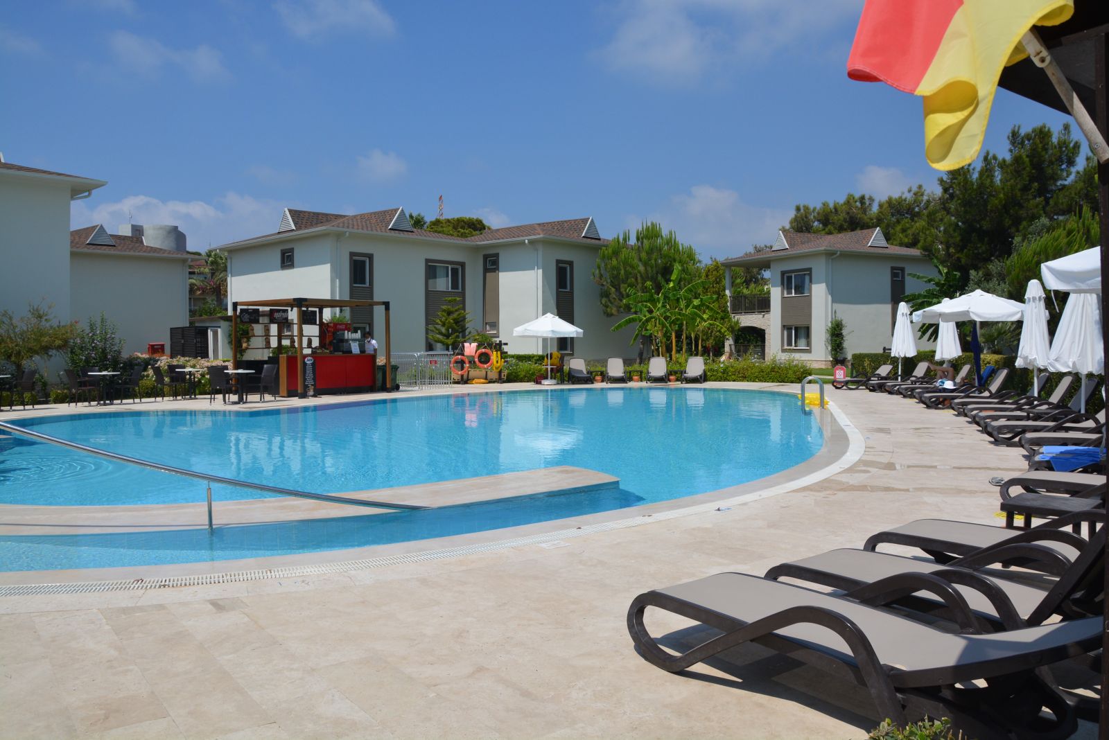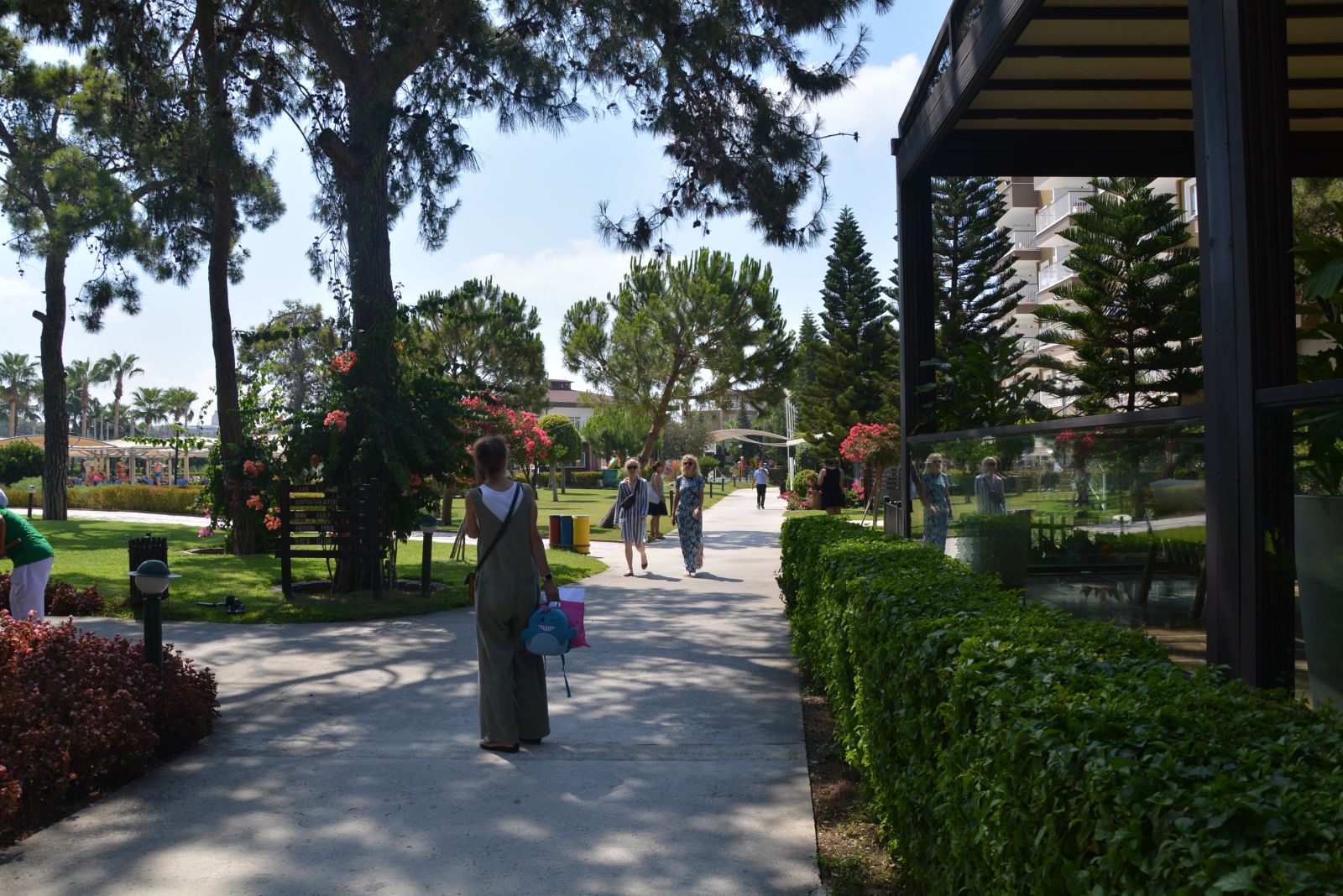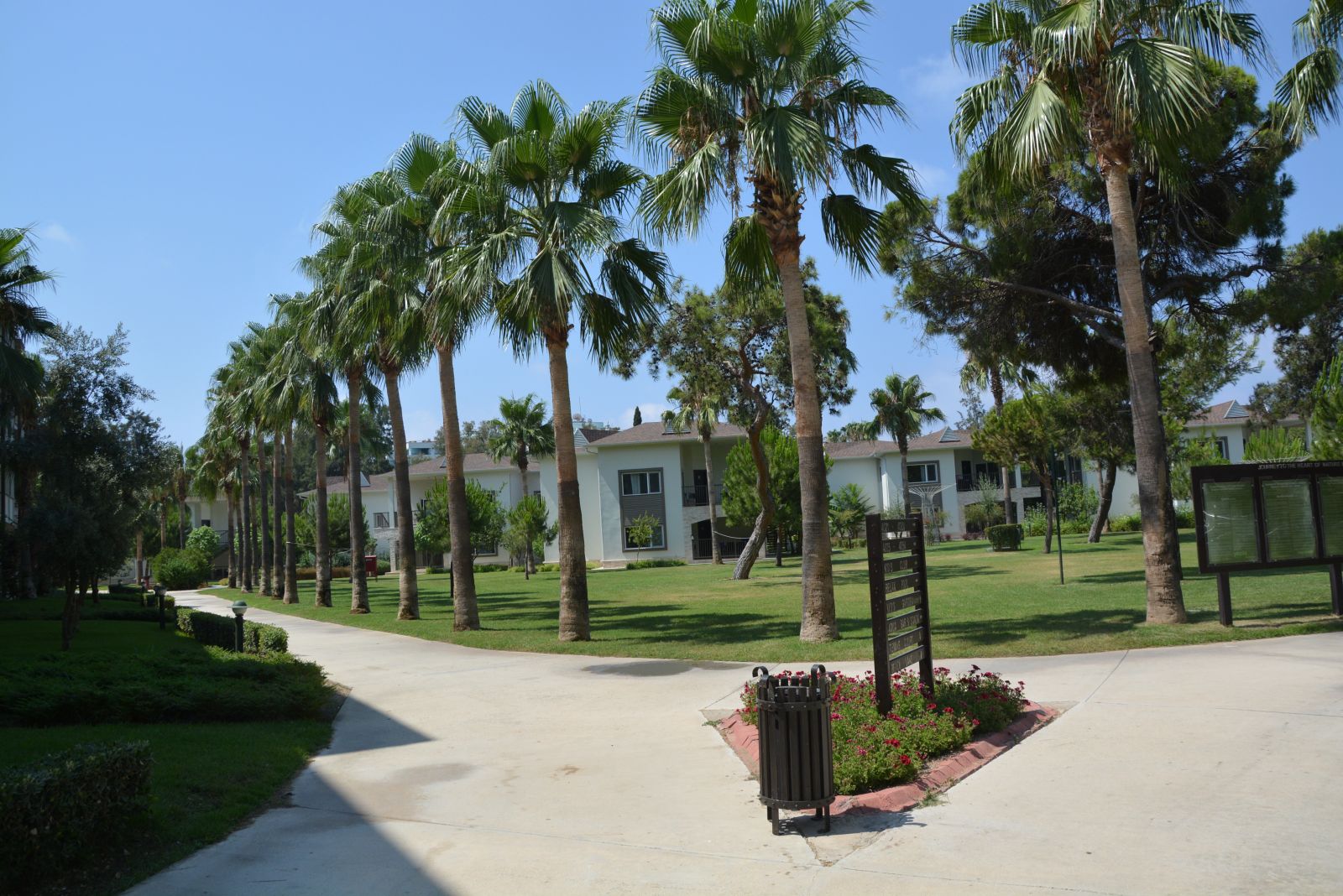 Территория этой семейной «пятерки» – довольно большая (50 тысяч кв. м.) и очень зеленая, что нравится всем отдыхающим (тень в сорокаградусную жару очень важна). На ней расположены здания трех корпусов отеля и виллы, три бассейна, один из которых – на территории мини-клуба, а один – только для взрослых, в релакс-зоне.