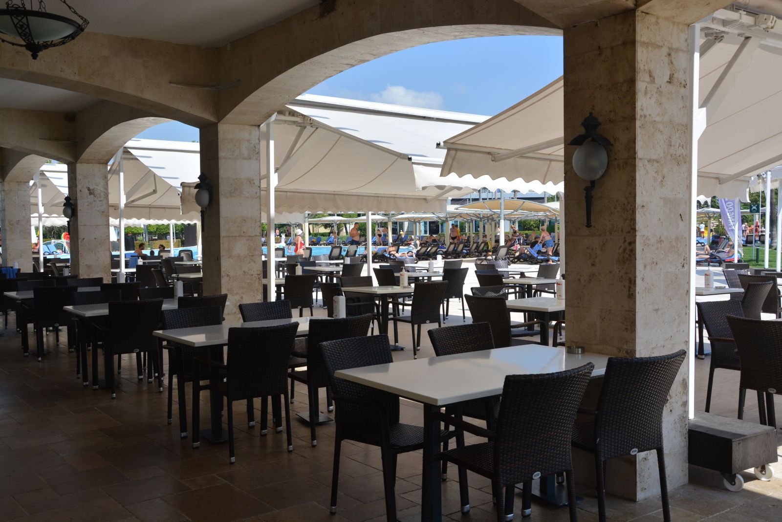 Обед родители можно устроить и на открытом воздухе, не отходя от детей, резвящихся в воде: рядом с основным бассейном и аквапарком работает хороший бар-ресторан и кондитерская с широким выбором сладостей, а на пляже – пляжный ресторан.