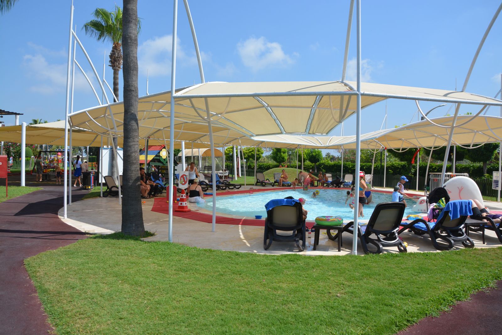 На территории самого мини-клуба есть удобный детский бассейн под тентом с горками для малышей, комнаты для дневного сна ребят, просторные игровые и большая игровая площадка на открытом воздухе (также защищенная тентом от прямых солнечных лучей). На ней, а также на других зеленых территориях отеля проходит вся дневная детская анимация.