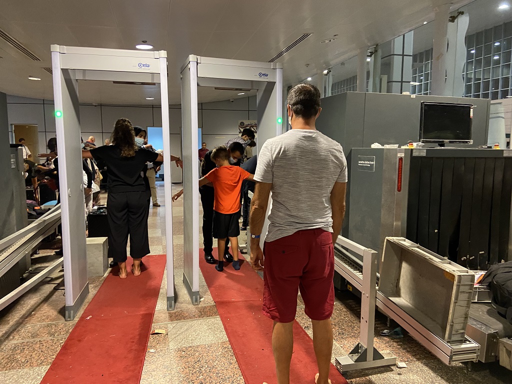 Сразу после прохождения регистрации на рейс и паспортного контроля пассажиров ждет еще один досмотр: перед выходом в «чистую зону». Там две рамки: в одну проходят мужчины, в другую женщины, поскольку их досматривают, соответственно, представители их же пола.