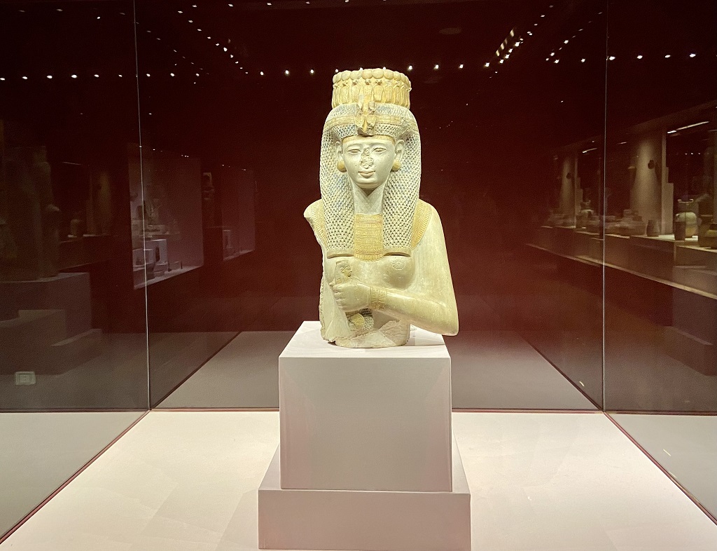 Среди топовых экспонатов южносинайского музея – голова царицы Хатшепсут, которая стояла перед колоннадой ее погребального храма. У нее была церемониальная борода, соответствующая иконографии фараона. Но о том, что захоронена была именно женщина, говорят широкие глаза и плавно изогнутые брови.