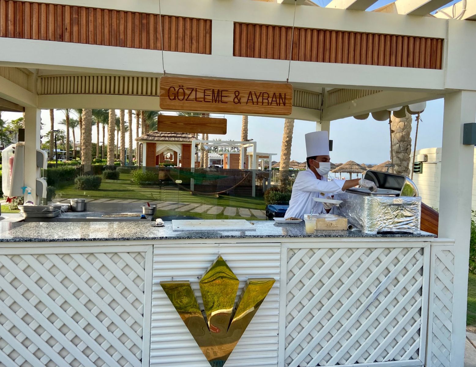 На территории отеля у бассейнов и на пляже расположены 9 баров, где всегда есть закуски и всевозможные напитки. Здесь вам приготовят вкуснейшие коктейли – как алкогольные, так и без алкоголя. Есть уголок с мороженым и «станция», где готовят лепешки гёзлеме и наливают свежайший айран.