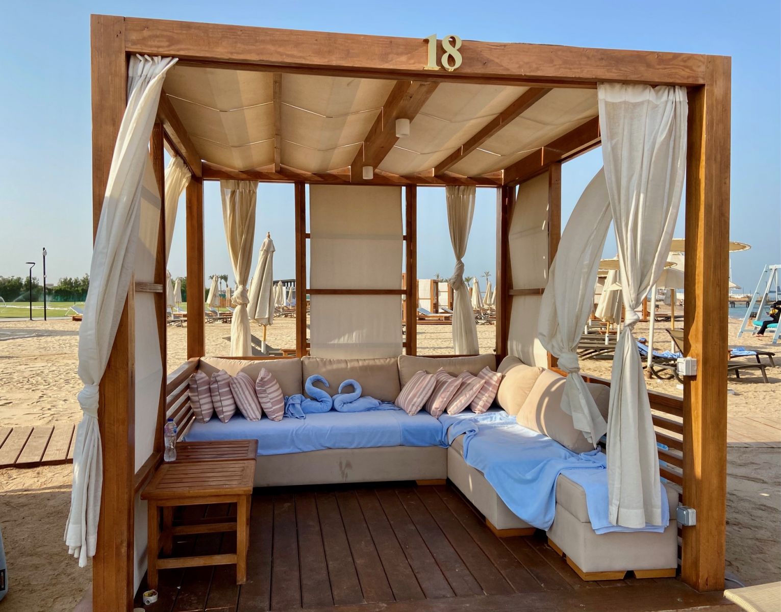 Отдыхать на пляже можно как в приватных кабинках (кабаны), так и на удобных шезлонгах.