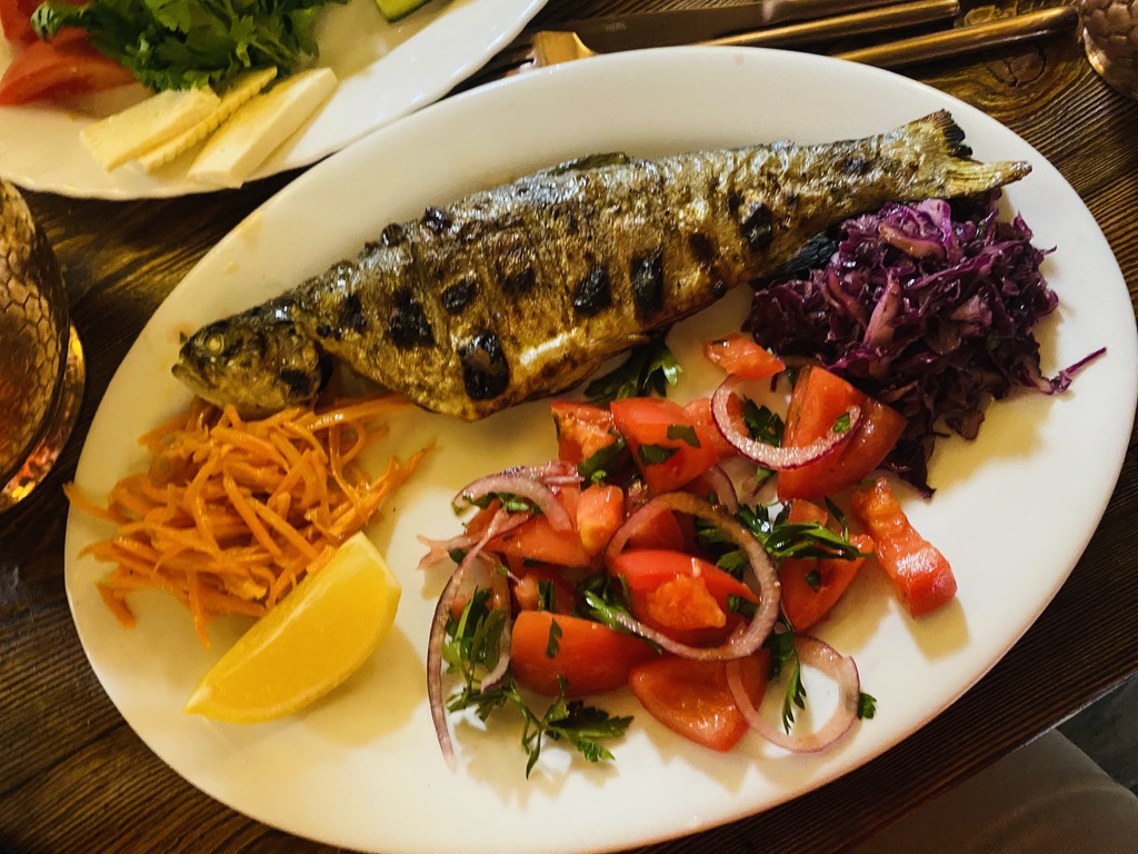 С мясом в Дагестане все понятно – оно тут превосходное. А вот за рыбой, радужной и янтарной форелью рекомендуем ехать в форелевое хозяйство «Янтарное». Тут сытно, вкусно и аутентично.