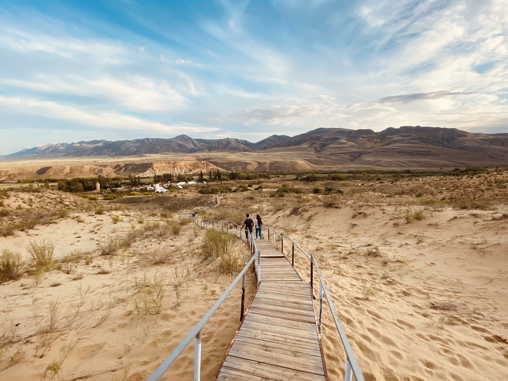 У подножья бархана есть кафе, фотогеничное здание бывшей ж/д станции и сувенирная лавка с изделиями местных мастеров. Можно купить нож ручной работы, цепочки, браслеты, магниты.