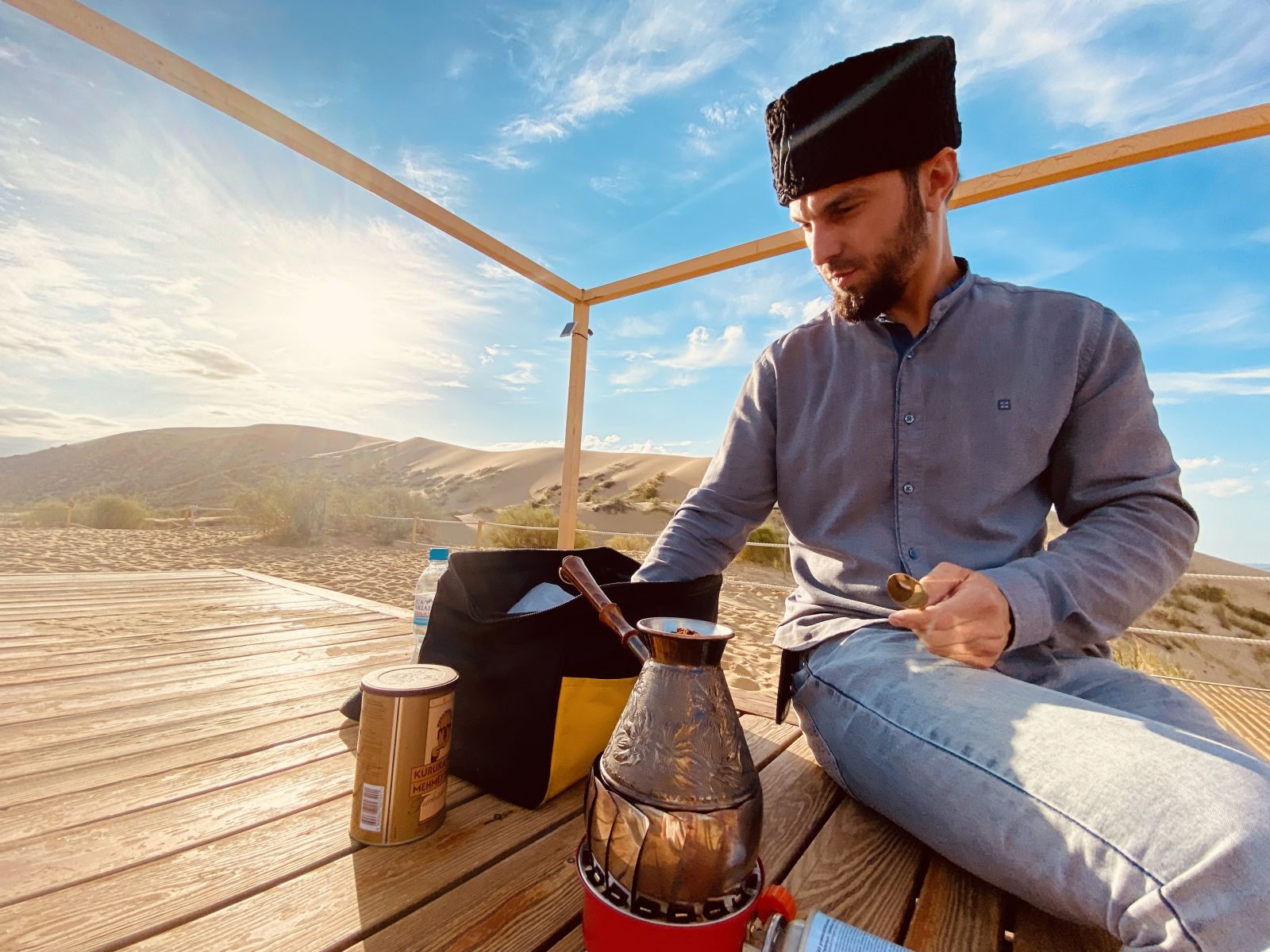Здесь сознание не сразу определит местоположение после вашей «телепортации». Ассоциации рождаются, исходя из опыта путешествий. Как правило, туристы сравнивают бархан Сарыкум, один из самых высоких в мире (высота более 250 м) и единственный в России и Европе с пустыней в ОАЭ.