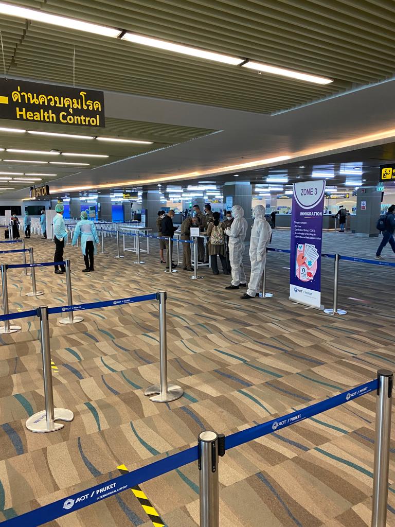 В соцсетях масса сообщений о том, что прохождение строгого санитарного контроля в аэропорту Пхукета займет много времени из-за проверок. Туроператоры эту информацию не подтвердили: в реальности с момента выхода из самолета до момента выхода из аэропорта прошло всего около 40 минут.