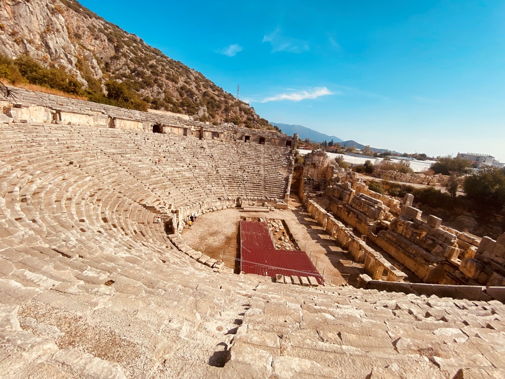Туристы знакомятся со столицей древнего Ликийского государства, где хорошо сохранились наскальные гробницы и греко-римский амфитеатр.