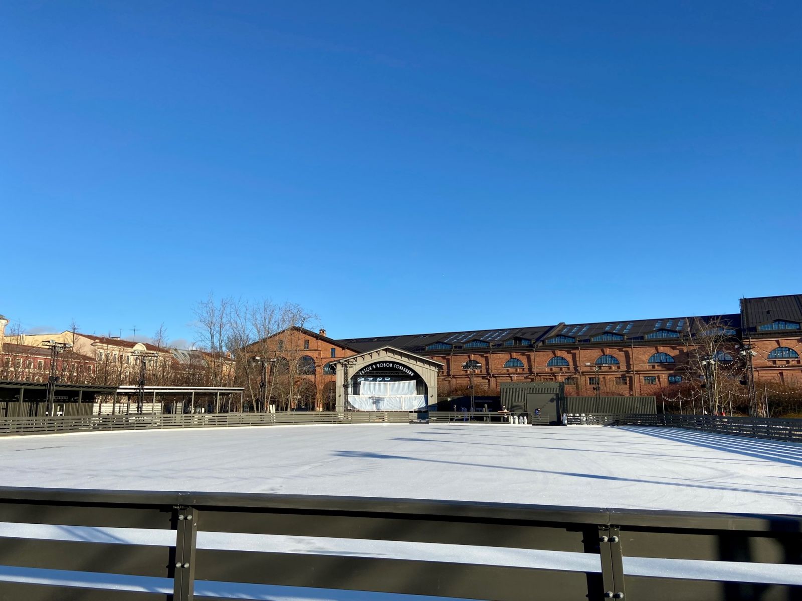 В ноябре здесь открылся панорамный каток. Каждый день с 11:00 до 21:00 на льду ждут начинающих фигуристов и всех, кто ищет романтики на льду. Стоимость катания – от 250 до 450 рублей в зависимости от времени сеанса. Прокат коньков – 350 рублей. На каток пускают детей старше трёх лет.
