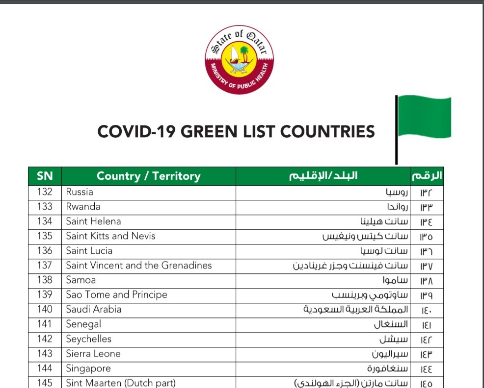 Министерство здравоохранения Катара 29 ноября обновило классификацию стран по уровню риска COVID-19. С 1 декабря в «зеленый» список внесено 177 стран, в «красный» - 19 стран.