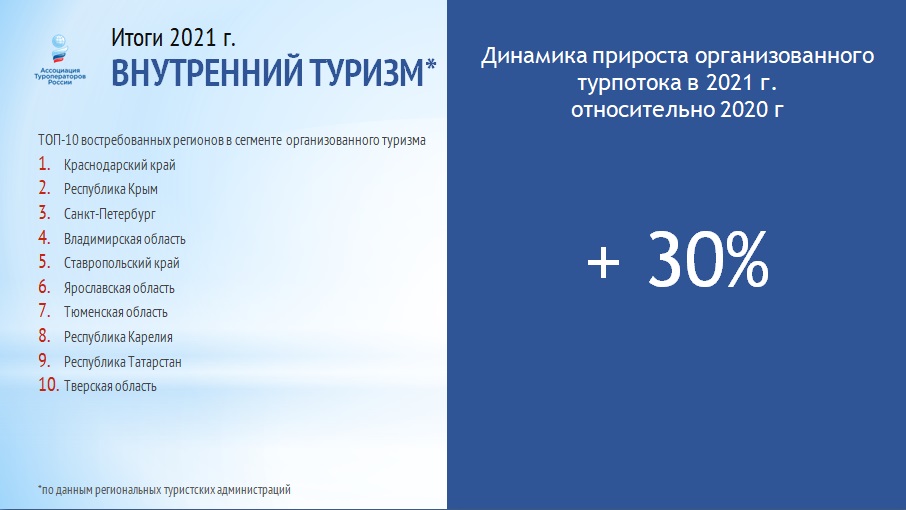 ИТОГИ 2021 ГОДА ВО ВНУТРЕННЕМ ТУРИЗМЕ