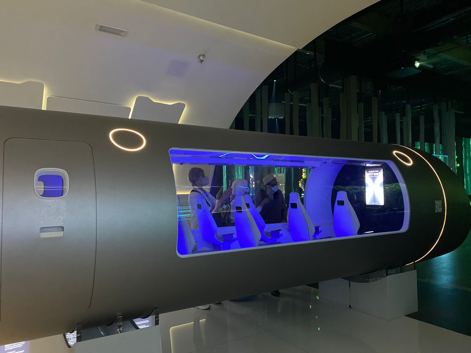 Обратите внимание на небольшой вагон Zeleros Hyperloop, он ближе к выходу из павильона. Не исключено, что уже совсем скоро именно такие поезда, способные развивать скорость до 1000 км/ч, станут нашим основным видом транспорта, частично заменив самолеты.