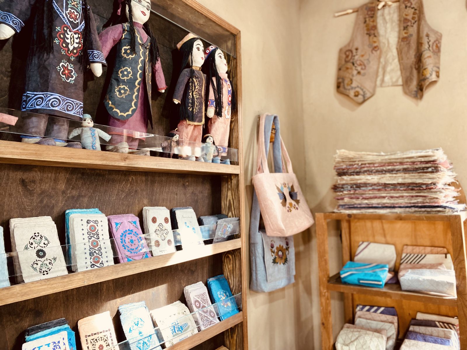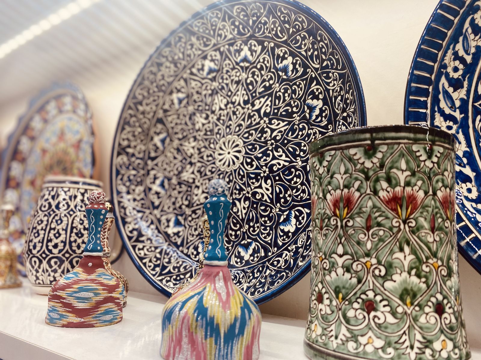 Чего стоит только грандиозная коллекция керамики десятков разных керамических школ, традиционные шелка-икаты с геометрическим орнаментом, тюбетейки, украшенные золотом, покрывала, расшитые шелком, платки из верблюжьей шерсти.