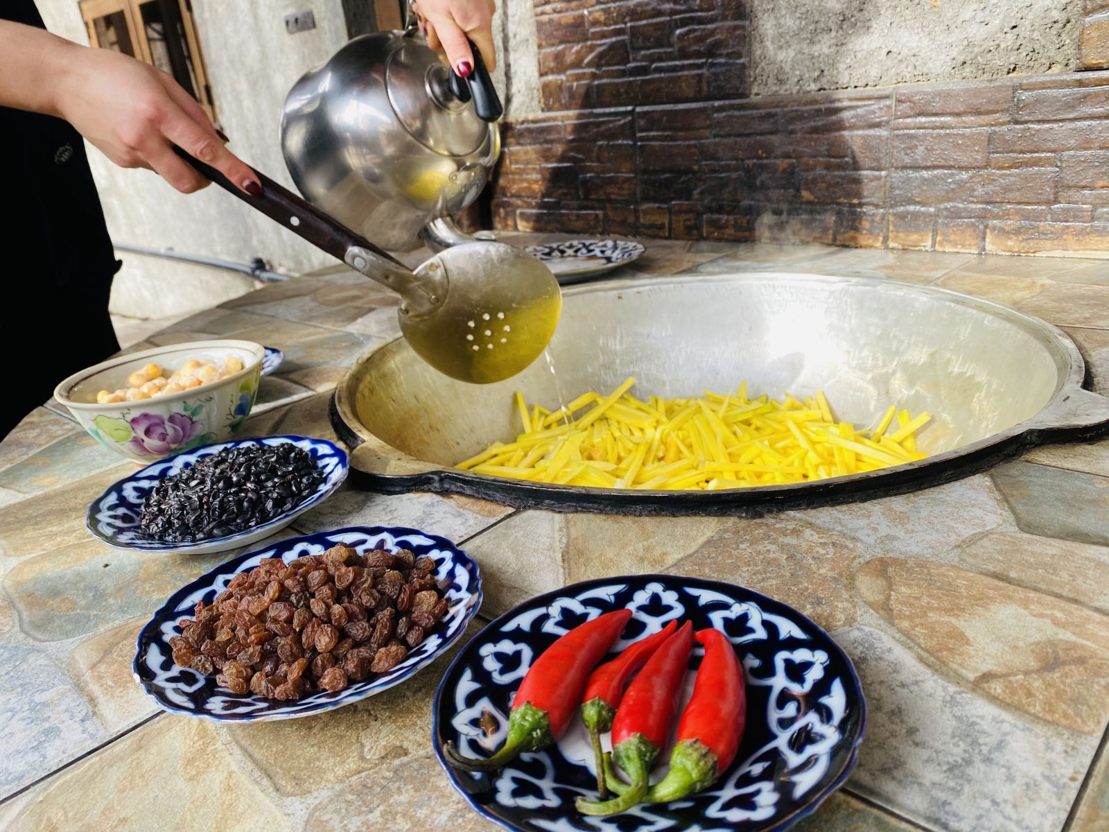 А еще в деревне можно пройти мастер-класс по приготовлению самаркандского плова. Его особенность в послойном расположении ингредиентов в казане, а затем и в тарелке.