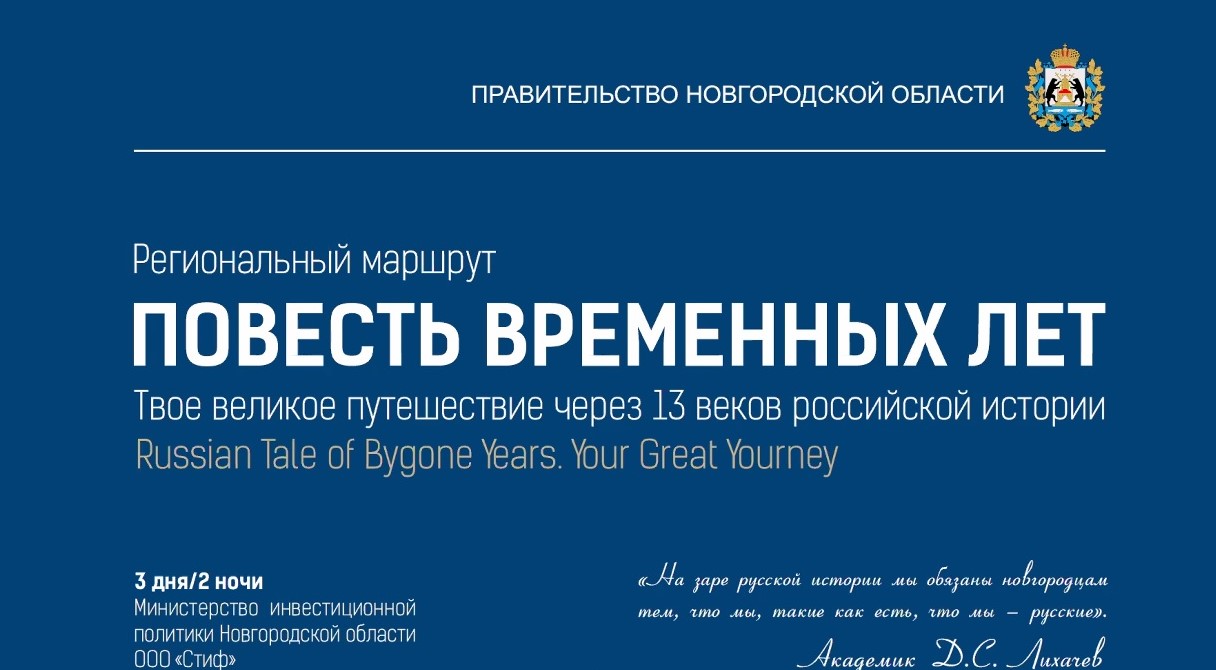 Региональный маршрут по Новгородской области «Повесть временных лет. Твое великое путешествие» представили Департамент туризма министерства инвестиционной политики Новгородской области и туристическая компания «Стиф».