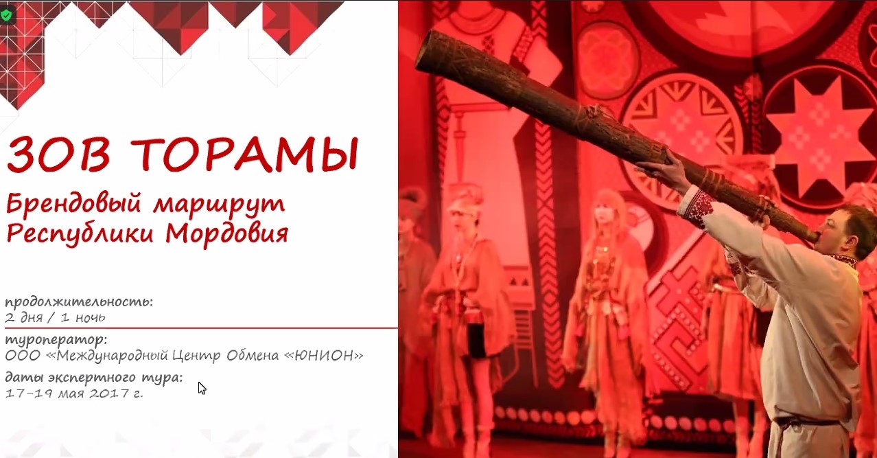 Национальный туристический маршрут Республики Мордовия «Зов Торамы» представила заместитель Министра экономики, торговли и предпринимательства РМ Марина Жулина. Название этого маршрута взято из этнографии мордвы.