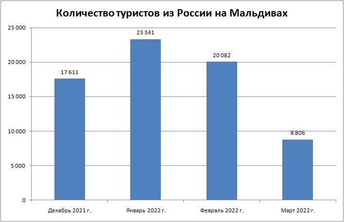 После 8 марта, когда были прекращены прямые рейсы, прибытия (уже с использованием только стыковочных рейсов) существенно упали – в день на Мальдивы до конца марта прилетали в среднем уже только 150-200 туристов из РФ.