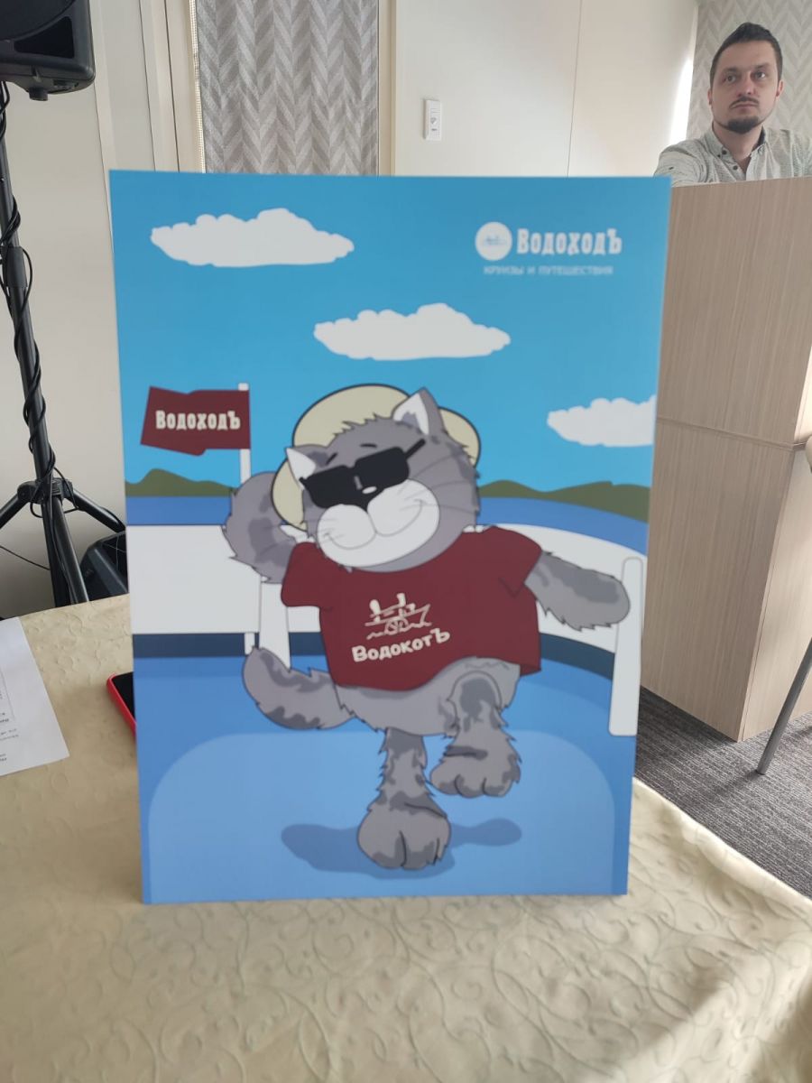 И, наконец, еще одна новинка – уже маркетинговая: по многочисленным просьбам туристов «ВодоходЪ» создал свой талисман. Для этого был объявлен конкурс, а победителем стал вот этот персонаж (фото ниже), который теперь будет сопровождать гостей компании в каждом круизе и красоваться на сувенирной продукции «Водохода».