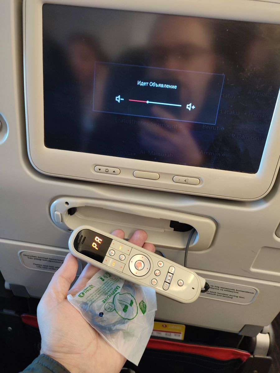 Из-за закрытого воздушного пространства на Юге России самолет летит до Антальи кружным западным маршрутом через Европу. Его можно наблюдать на интерактивной карте полета – монитор есть в спинке каждого кресла.