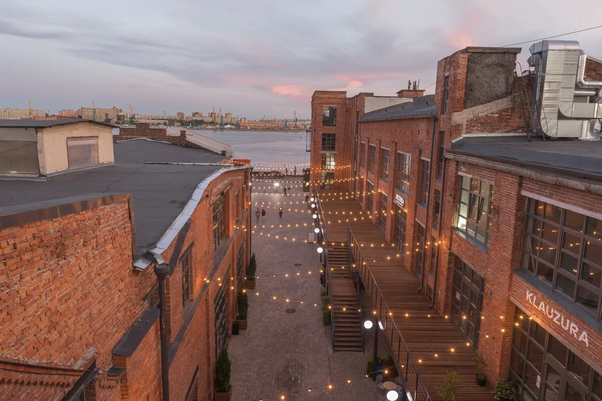 В мае на Васильевском острове открылось новое городское пространство «Культурный квартал Брусницын» с видом на Финский залив. Прямо на входе в «Брусницын» гостей встречает в арке маленькая конфетная фабрика, в помещении которой восстановили и старинную кирпичную кладку, и даже плитку в цехах.