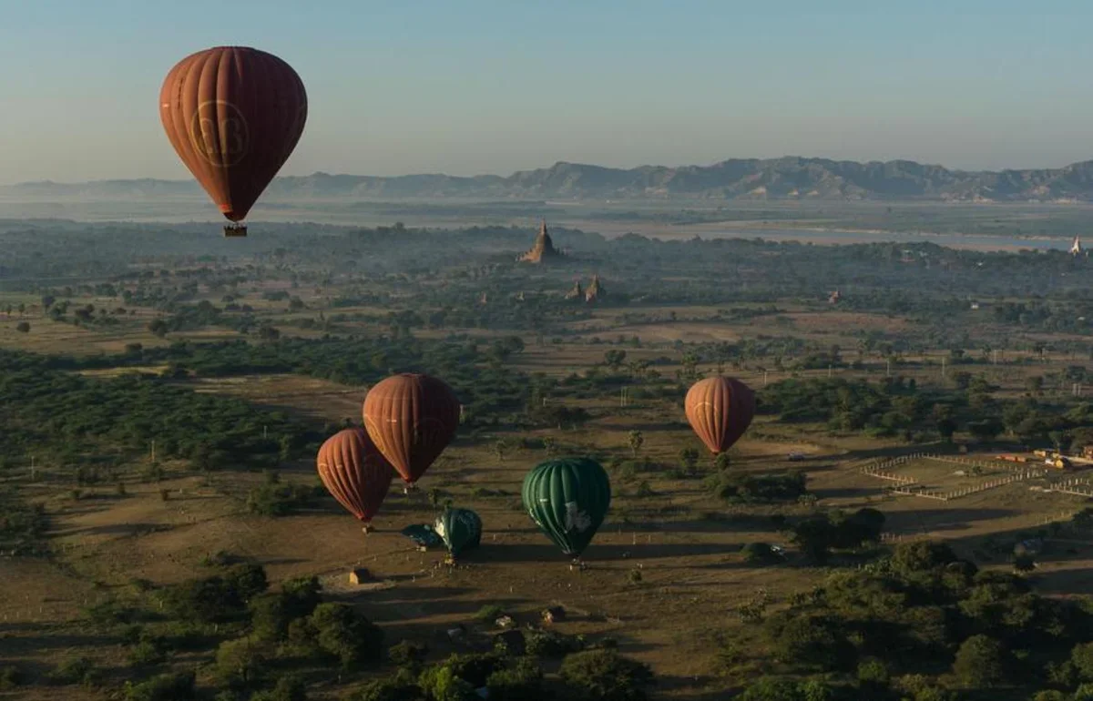 Отдельное впечатление – рассвет на воздушном шаре над Баганом, археологической зоной с тысячами пагод.