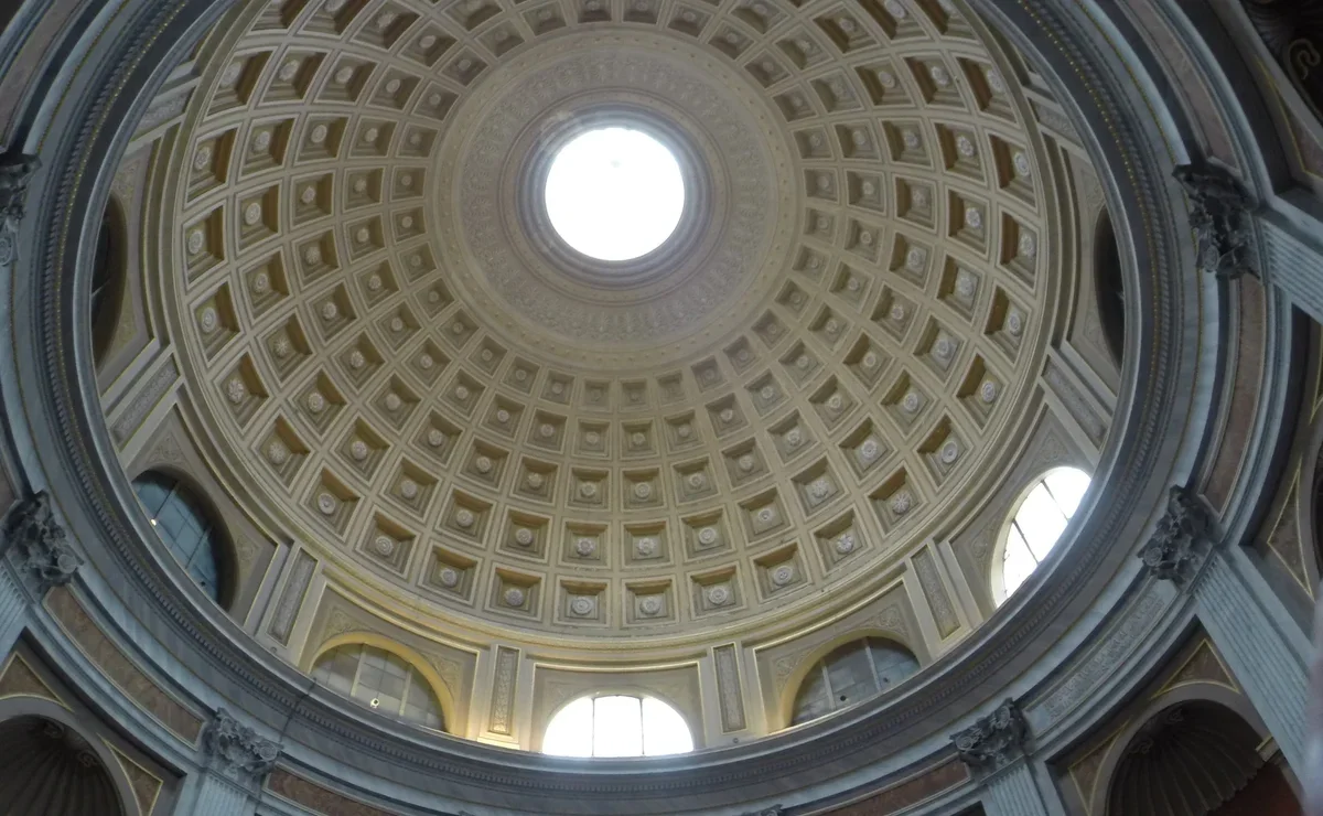 Пантеон, построенный в I веке до н.э. по приказу Агриппы, последнего консула Римской республики, пострадал от нескольких пожаров и был полностью перестроен при императоре Адриане во II веке нашей эры. Это одно из немногих практически полностью сохранившихся сооружений Древнего Рима. Свет в здание с куполом диаметром 43 метра проникает через входную дверь и девятиметровое круглое отверстие в крыше.