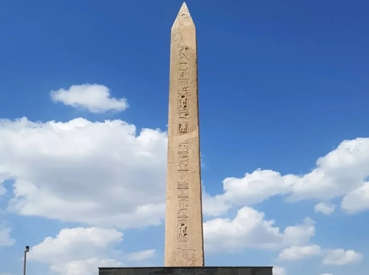 Экскурсия по музею начинается у так называемого «висячего обелиска» перед входом в комплекс. В 2008 экспонат был разбит на две части, но теперь они снова соединены и обелиск установлен на вершине пьедестала, украшенного словом «Египет», написанным на разных языках мира.