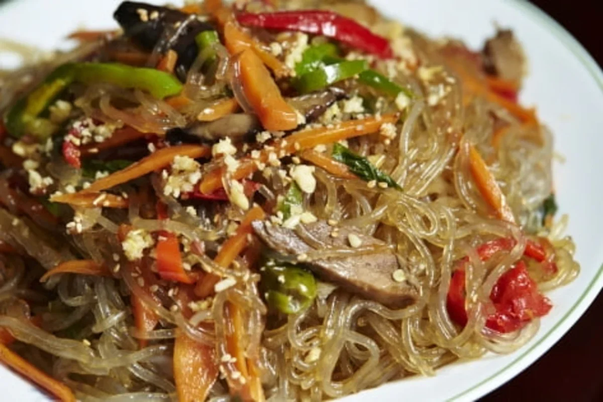 Лапша с овощами чапчхэ тоже украшает корейский стол в праздничные дни и во время торжественных событий. Название блюда состоит из двух слов: «чап» (смешивать) и «чхэ» (овощи).