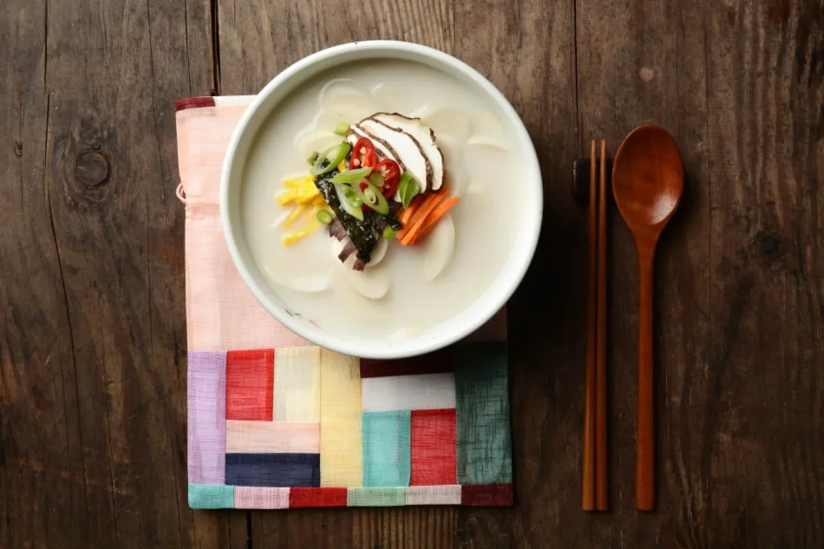 «Ттоккук» – суп с рисовыми клецками. Чаще всего для его приготовления используют продолговатый «карэтток», который сначала тонко режут на кругляшки и обваривают, затем добавляют в говяжий бульон и доводят до кипения, а перед подачей украшают яичным желтком или ломтиками сухой морской капусты ким.