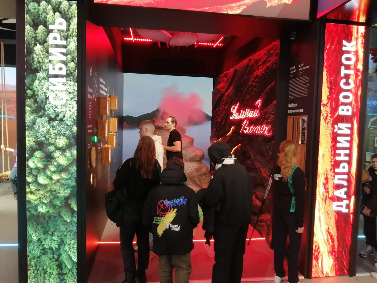 На ВДНХ в эти выходные в рамках международной выставки-форума «Россия» открылось выставочное пространство, посвященное внутреннему туризму. «Почувствуй Россию» – экспозиция, где ощущаешь атмосферу каждой из девяти представленных здесь макротерриторий страны. Выставка мультимедийная и иммерсивная: буквально за полчаса можно увидеть практически всю Россию с эффектом полного погружения в ее удивительные места. Рассказываем, что представлено на экспозиции и ради чего сюда стоит заглянуть.