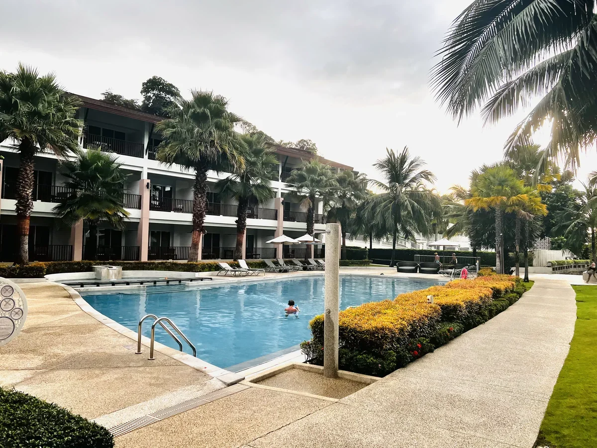 Курортная жизнь в отеле мягко течет между взрослыми и детскими бассейнами (всего 4 бассейна), мини аквапарком, детским клубом, игровыми детскими зонами, ресторанами с блюдами разных кухонь, SPA центром, теннисным кортом, магазинчиками, кофейнями с действительно вкусным и недорогим кофе (80 бат).