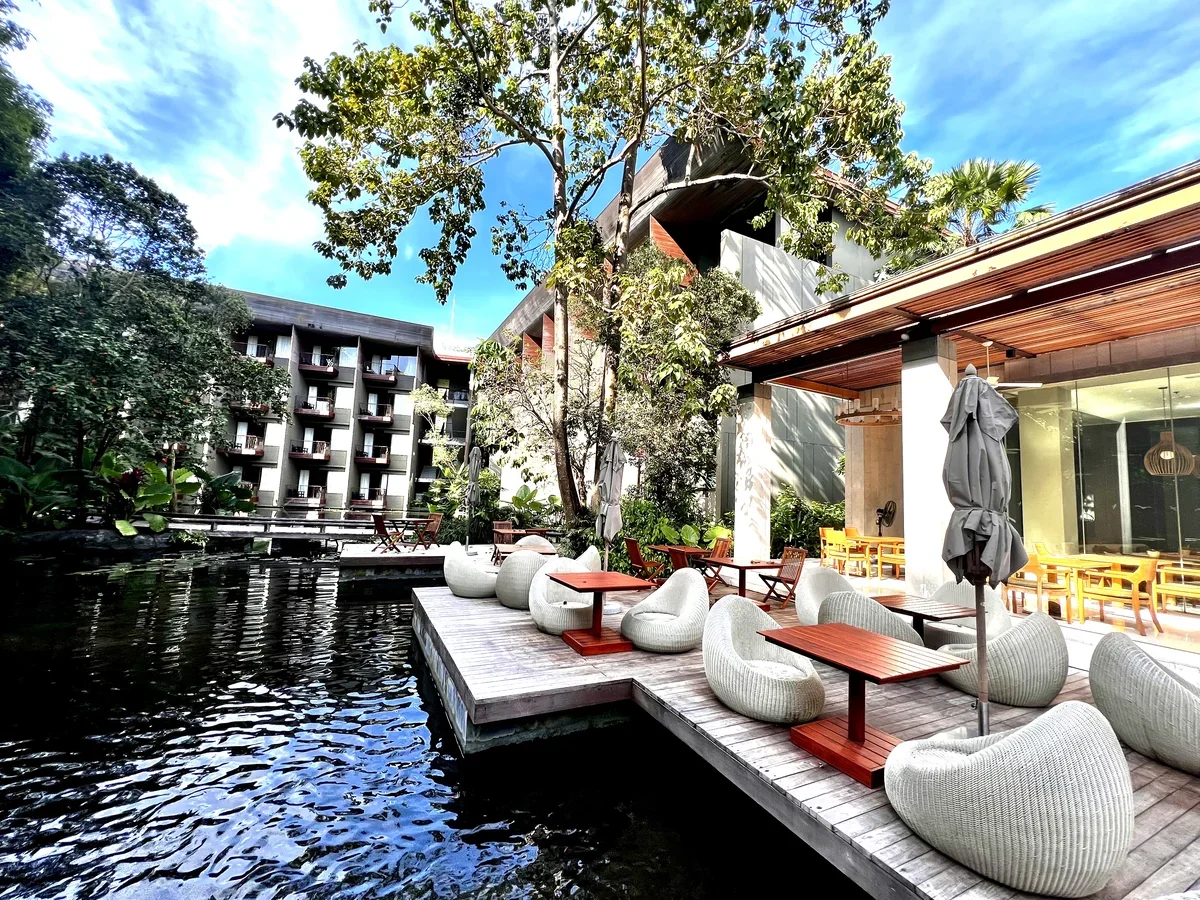 В этом отеле есть 180 номеров, расположенных в семи 3-4 этажных зданиях, а также 26 вилл. Чувствуешь себя очень комфортно, как дома. Вероятно, такие ощущения дарят красивые зоны отдыха – кафе у пруда с лотосами, бассейн, утопающий в зелени, живописный пляж.