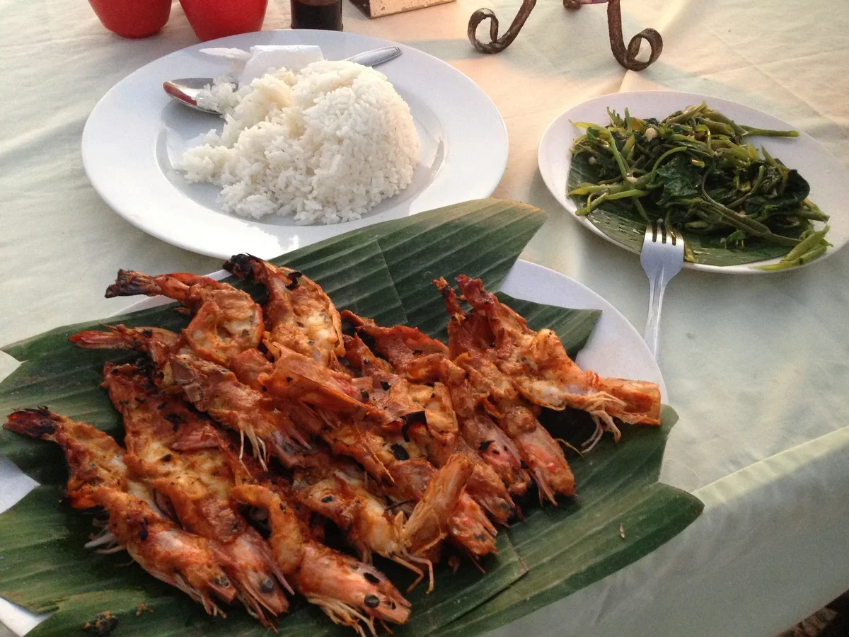 Перед закатом столики выносят поближе к воде, порции в основном достаточно большие, чтобы наесться (все относительно конечно).
