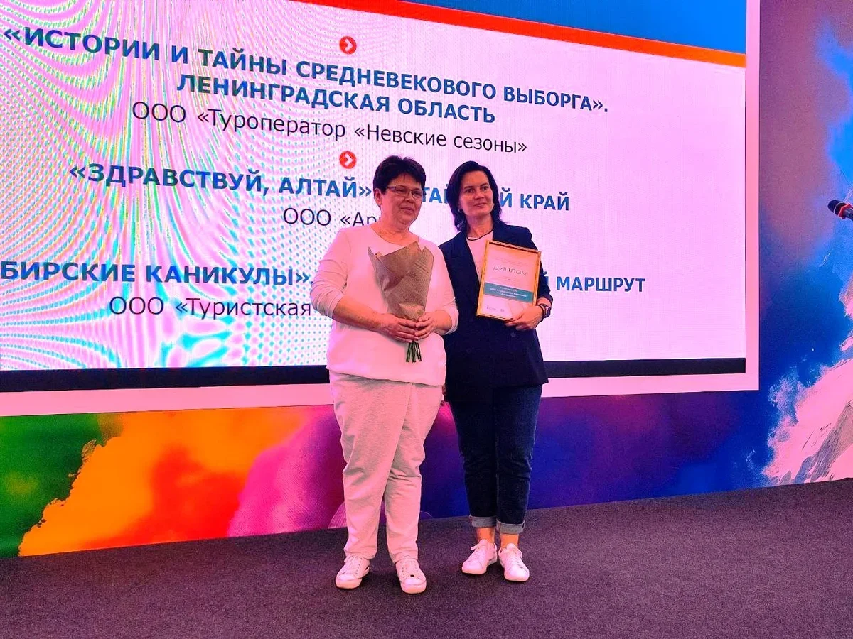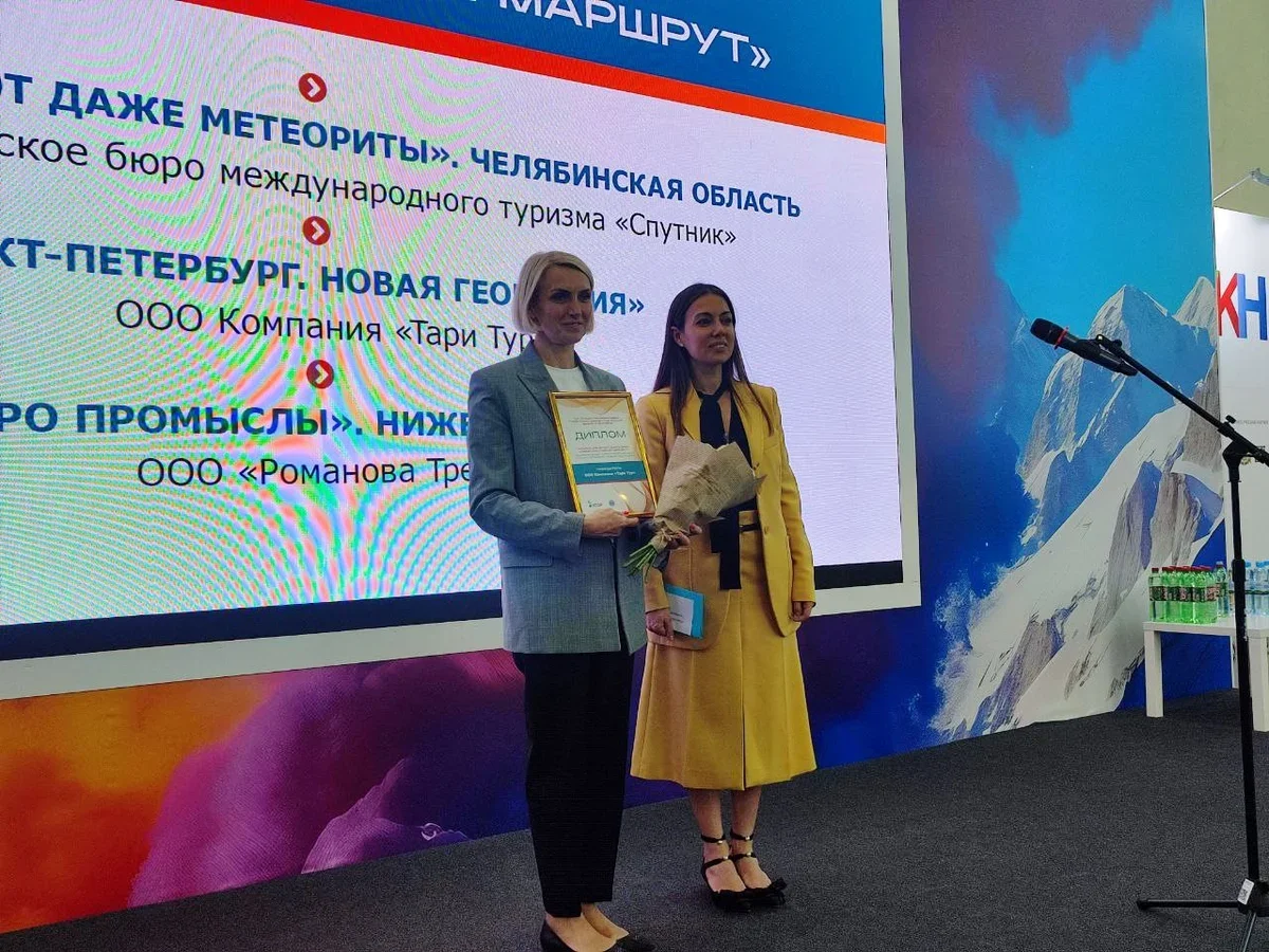 Диплом на сцене получала Оксана Лебедева, исполнительный директор группы компаний «Тари Тур», создателя этого маршрута.
