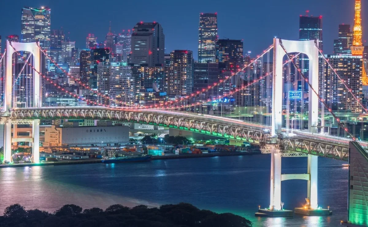 Радужный мост в Токио (на обложке) – один из самых впечатляющих в мире. Это огромный подвесной мост, который соединяет Токио (верфь в Сибаура) с искусственно созданным островом Одайба.