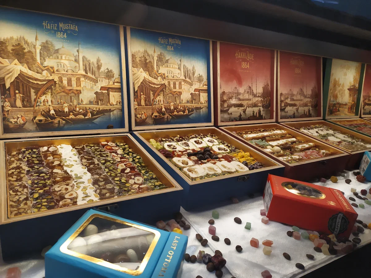 Туристам стоит обратить внимание и на фирменные магазины сладостей: точки бренда Koska представлен практически везде, а вот более люксовые варианты стоит искать в центре: это магазины бренда Hafiz Mustafa 1864. Стоит зайти и в Simit Sarayu, и угоститься в кафе-мороженых бренда MADO. Есть в Стамбуле и лавки (дюканы) знаменитого кофейного бренда Mehmet Efendi, где кофе смелят прямо при вас.