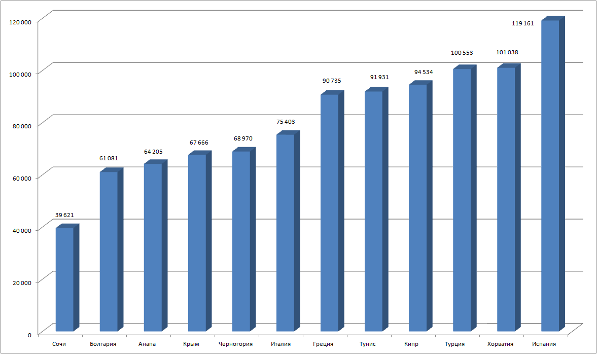 – до 50 тыс. р. на двоих: Крым, Болгария, Сочи, Анапа, Турция, Испания. По сравнению с после-майским периодом число таких стран сократилось на 3.