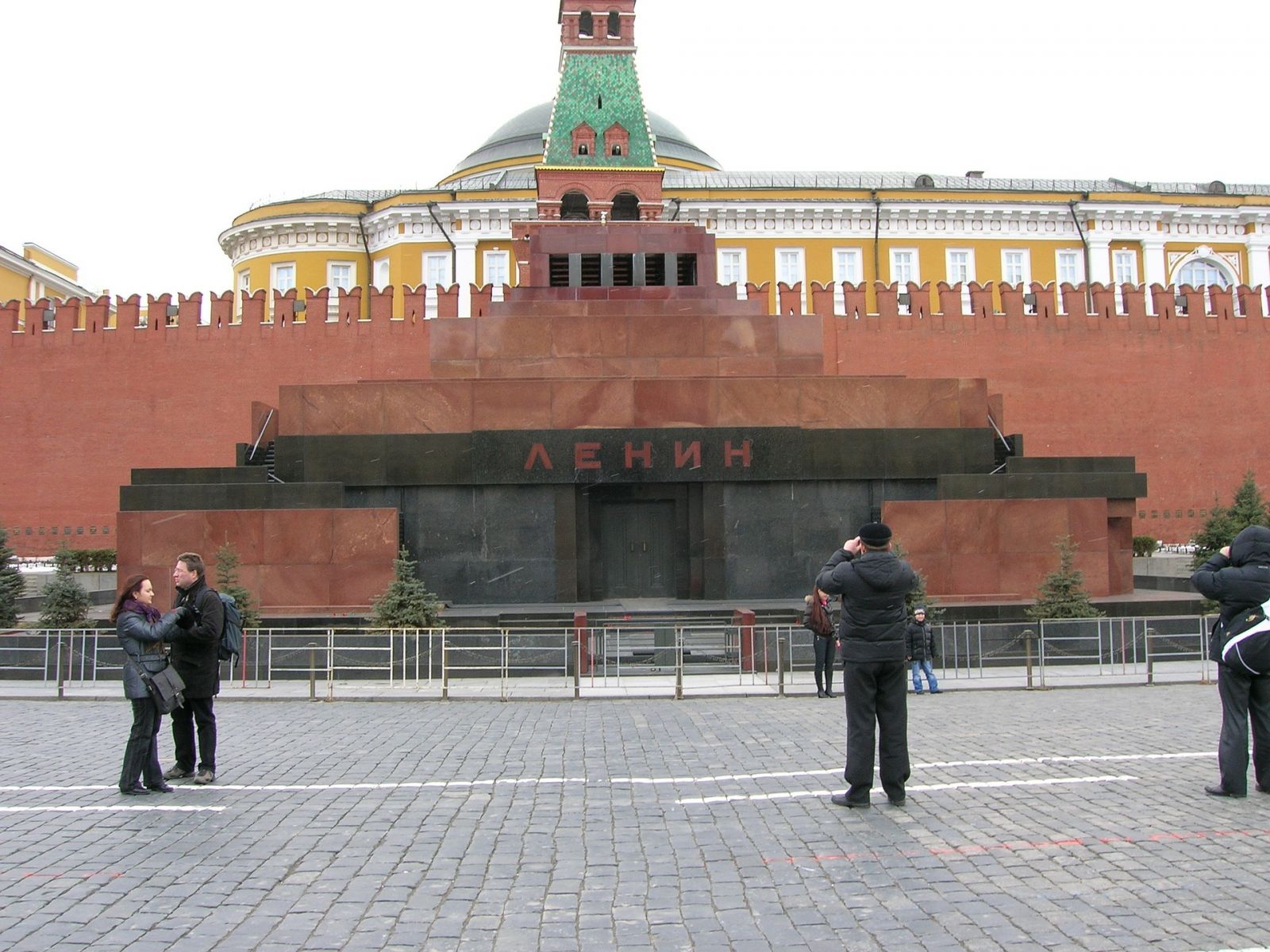 Посетителей предупреждают, что здесь надо вести себя тихо и нельзя фотографировать. Затем, пройдя пару коридоров, перед вами окажется сам Владимир Ильич Ульянов aka Ленин – лидер, возглавивший большевистскую октябрьскую революцию, лежащий в стеклянном саркофаге и тускло освещаемый красным светом.