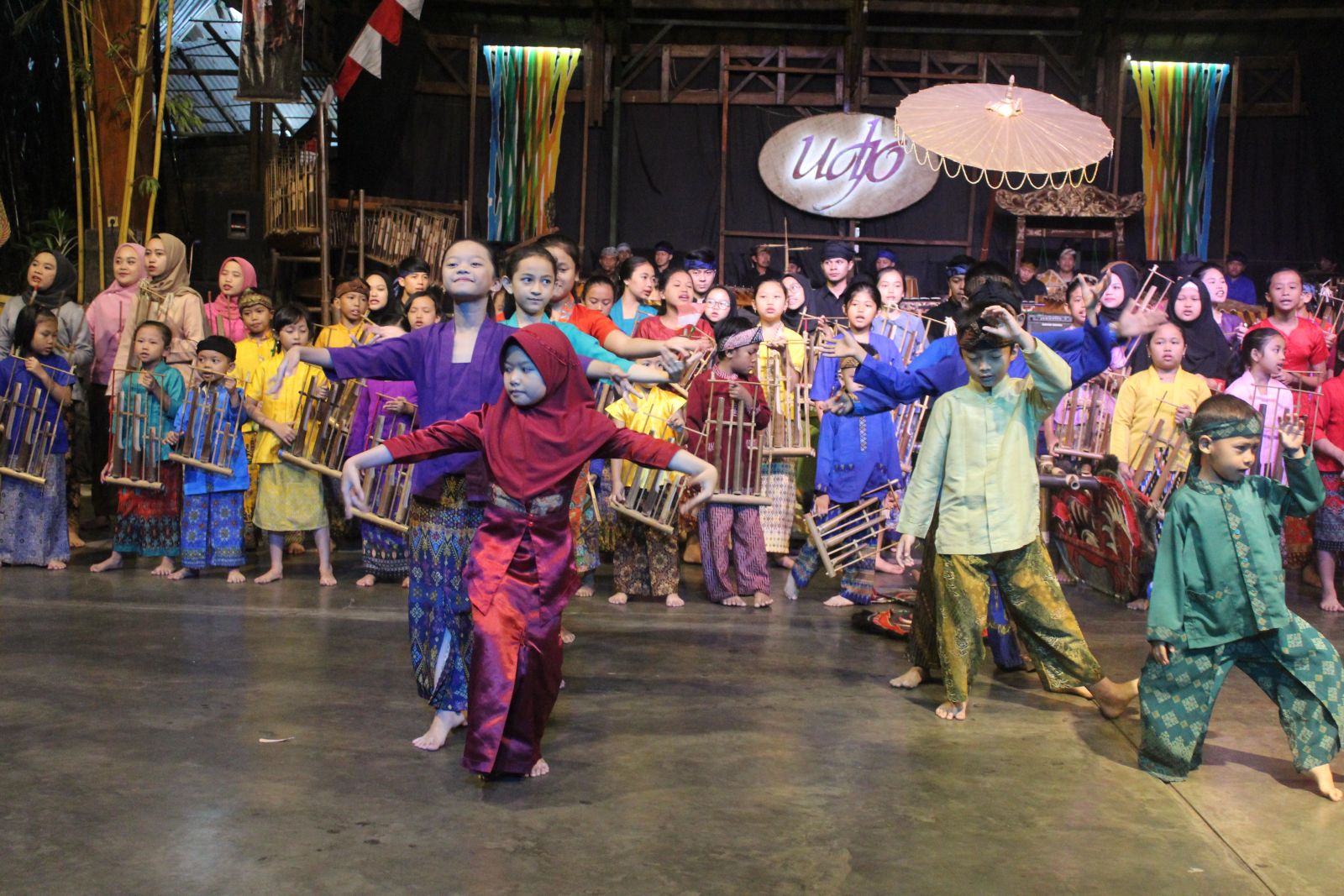В представлении принимают участие и дети, которые с 5 лет обучаются в школе при театре. В 7-8 лет они уже хорошо осваивают танцы и ангклунг, а в более зрелом возрасте могут участвовать в гамелане – традиционном индонезийском оркестре, который состоит преимущественно из ударных инструментов.