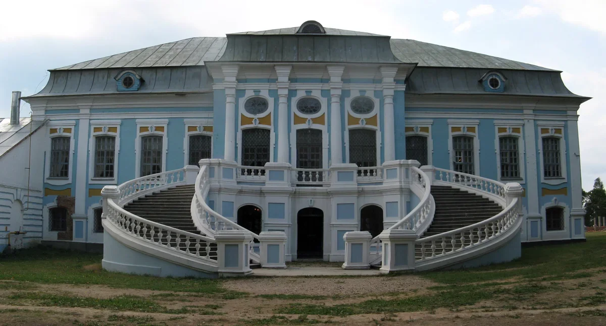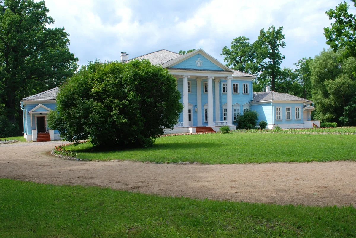 Изюминка усадьбы – бело-голубой дворец, построенный в XVIII веке в стиле русского, елизаветинского барокко, который вызывает ассоциации с нарядным придворным в камзоле с накрахмаленными манжетами.