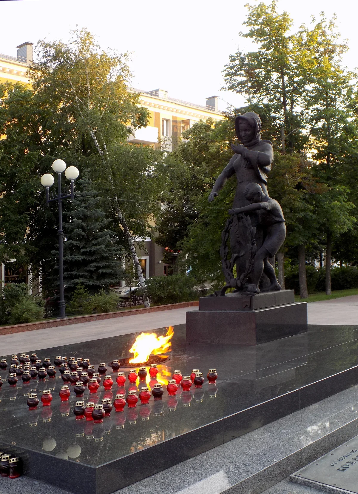 Чтобы обойти центр города, хватит получаса. Местная молодежь любит отдыхать «у Хоркиной» — в сквере рядом со спорткомплексом имени олимпийской чемпионки, где стоит памятник знаменитой уроженке Белгорода. И где за гуляющей молодежью «наблюдает» «Глаз декана» - одна из многочисленных контактных скульптур, которых в Белгороде очень много.