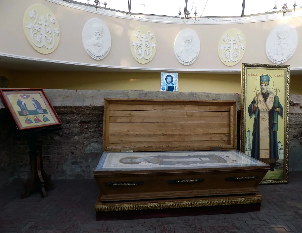 На этом месте была обнаружена подземная часовня с его нетленными мощами.