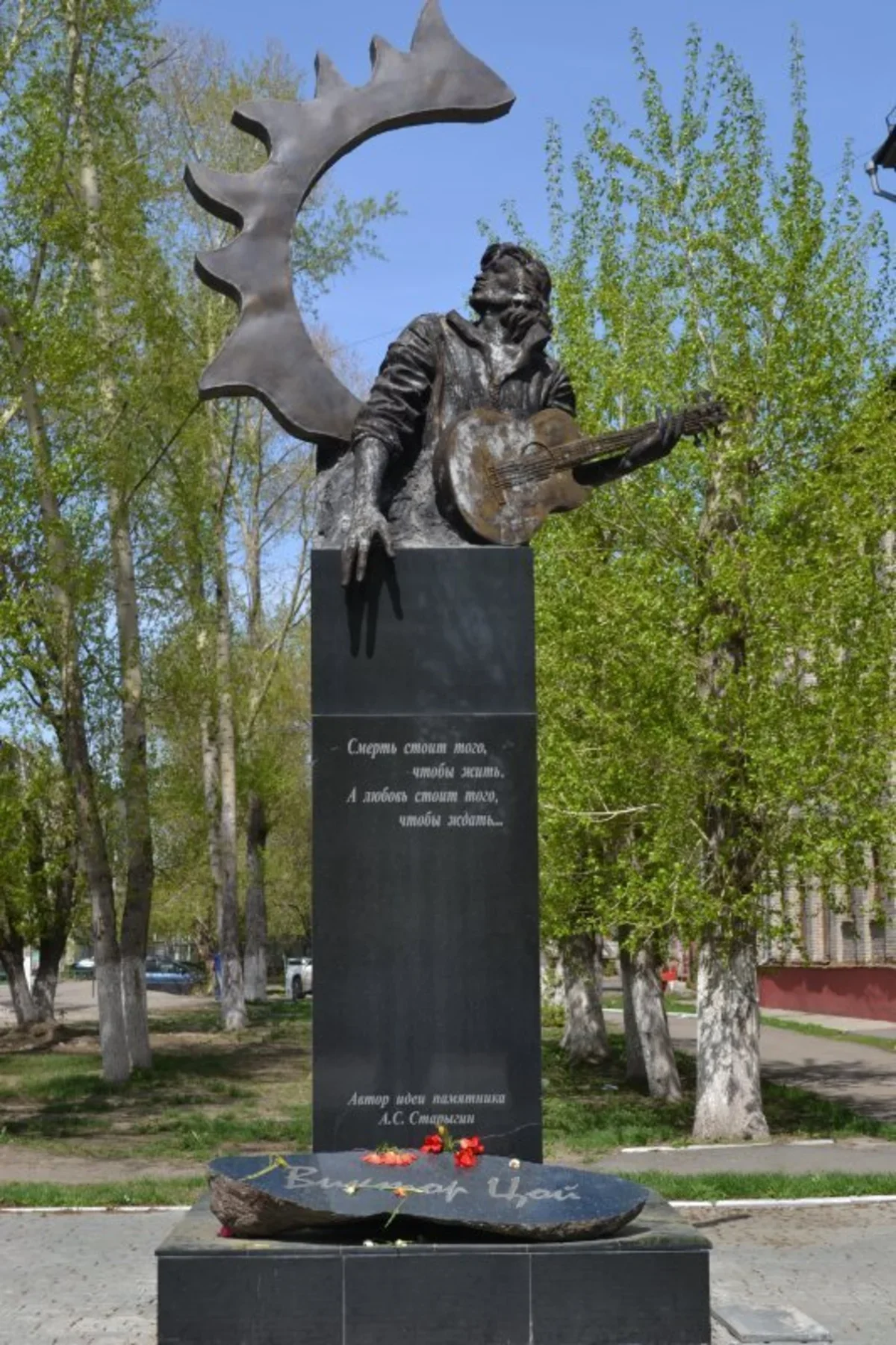 «Звезда по имени Солнце» – памятник рок-музыканту, поэту Виктору Цою, можно найти перед корпусом педагогической академии.