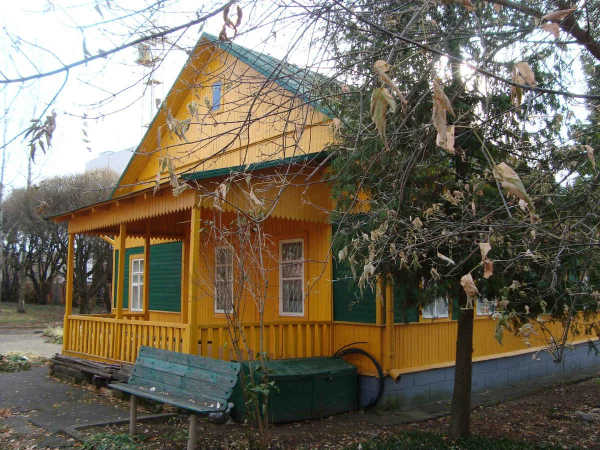 «Дом Михал Иваныча производил страшное впечатление. На фоне облаков чернела покосившаяся антенна. Крыша местами провалилась, оголив неровные темные балки. Стены были небрежно обиты фанерой. Треснувшие стекла - заклеены газетной бумагой. Из бесчисленных щелей торчала грязная пакля».