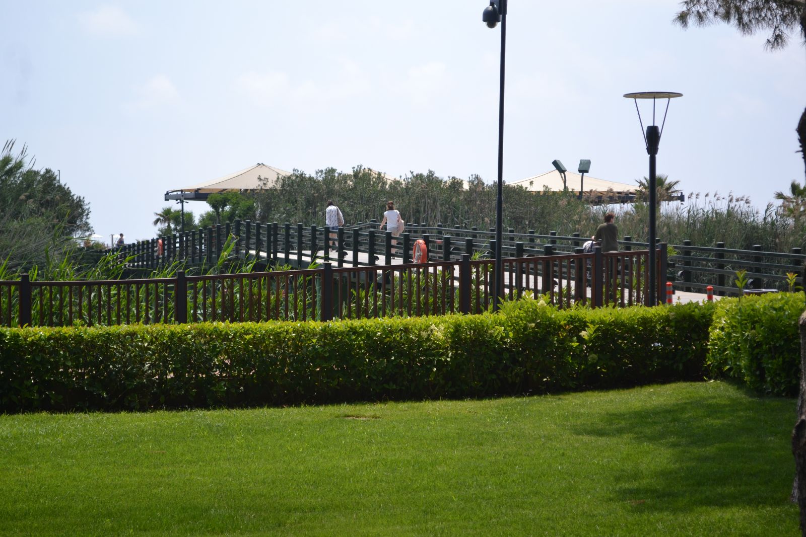 Отель расположен не на первой линии, а рядом с озером Титреенгёль, поэтому до пляжа придется пройтись (ок.7 минут пешком по живописной тропинке вдоль озера), или проехать на бесплатном трансфере, который отправляется каждые 15 минут. Пляж – песок и мелкая галька, с выделенными зонами для детей и взрослых и павильонами за отдельную плату. Шезлонги здесь расположены под рядами стационарных навесов, что семьям с маленькими детьми, безусловно, очень удобно.