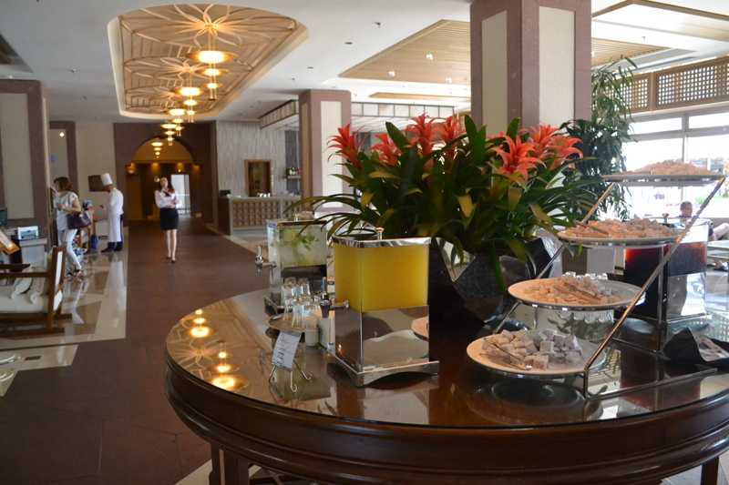 Питание в Xanadu практически круглосуточное. В перерывах между завтраком, обедом и ужином в основном ресторане работают снек-бары у бассейнов и на пляже – причем там подаются отнюдь не одни лепешки и бургеры (как это принято во многих «бюджетных пятерках» Турции) а полноценные горячие блюда, включая супы.