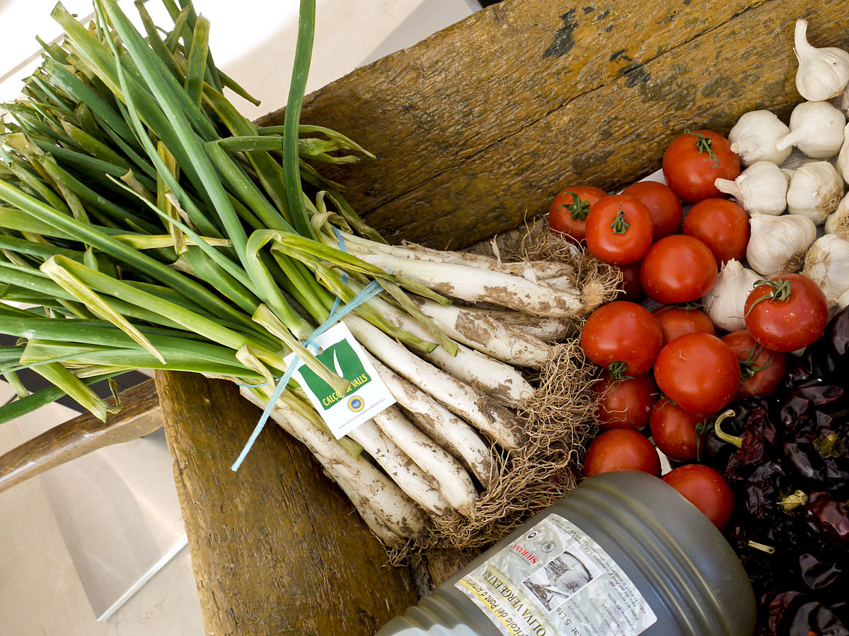 Кальсот (сalçots) - сладкий и нежный лук, который традиционно готовят непосредственно над открытым огнем, так что внешний слой слегка подгорает, но зато внутренняя его часть приобретает удивительный вкус. Кальсот обычно подаются с соусом ромеско (romesco) или каталонским пикантным соусом сальбитшада (salbitxada) из помидоров, чеснока, чили и миндаля .