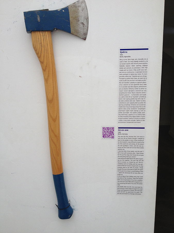 Один из самых колоритных экспонатов – топор. Нет, им к счастью никого не убили. Топором одна дама изрубила мебель, подаренную ей ее возлюбленной (girlfriend), которая позже от нее ушла. Вот и такие нешуточные страсти, как оказалось, вполне могут стать музейной историей. Кстати, в этом музее есть сувениры, которые, напротив, символизируют долгие отношения. Например, это чашки, которые не бьются.