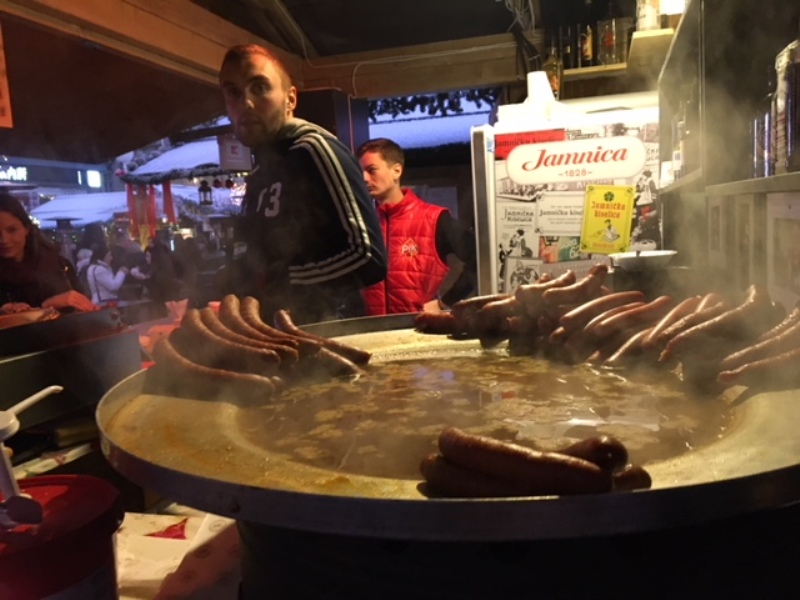 Чего стоят только одни колбаски всевозможных видов, которые жарятся тут же, на месте: запахи такие, что устоять невозможно. Кроме колбасок, тут можно отведать и сыры, местный «хамон» и множество других не менее вкусных закусок. Так что голодным остаться невозможно. Стоимость такой уличной еды – всего 15-20 кун. Это порядка 150-200 рублей. Весьма неплохо, согласитесь?