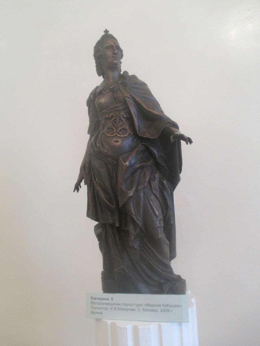 Спустя 35 лет монумент, прозванный «Медная бабушка», был выдан Александру Пушкину в качестве приданного Натальи Гончаровой. К сожалению, оригинальная статуя не сохранилась, но в усадьбе стоит ее сильно уменьшенная копия. Главная интрига - образ императрицы: «Хотели сделать Афину, но скульптор пошутил… и сделал Минерву», – рассказывает экскурсовод.